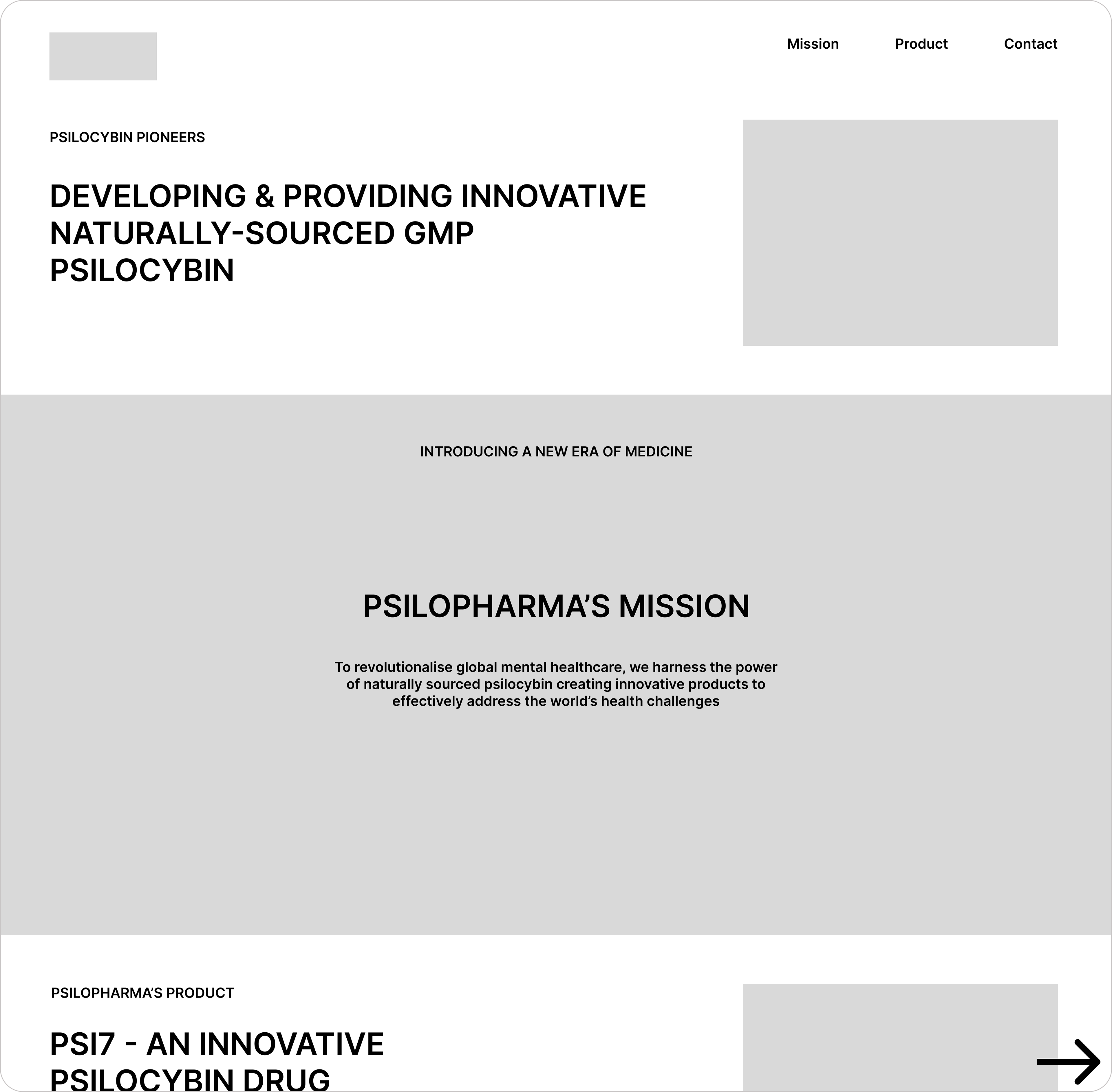 A no-code website for a pharmaceutical company that produces naturally sourced psilocybin for medicinal use.